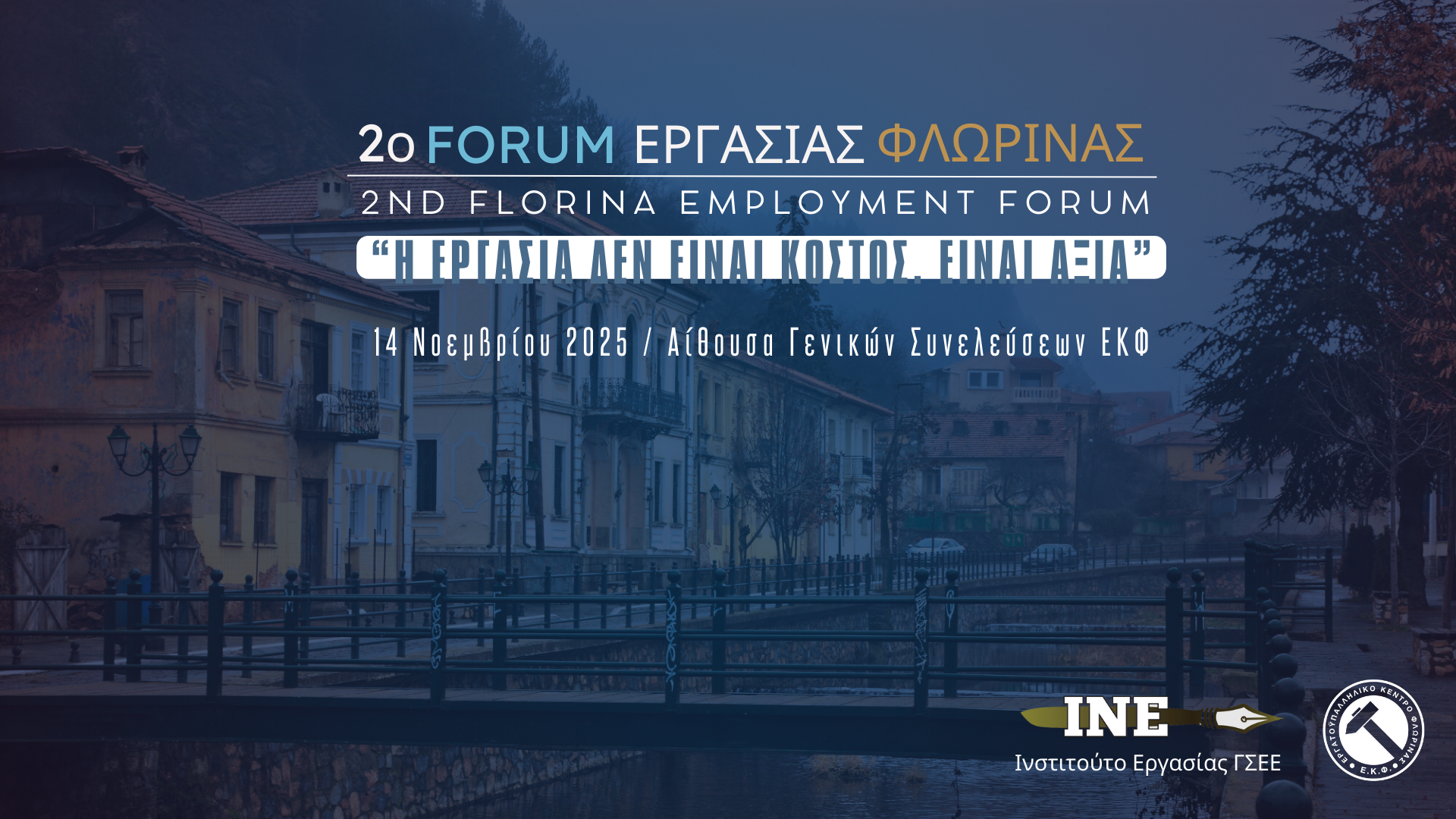 Το Εργατικό Κέντρο Φλώρινας διοργανώνει το 2ο Φόρουμ Εργασίας Φλώρινας, με θέμα «Η εργασία δεν είναι κόστος, είναι αξία», την Παρασκευή 14 Νοεμβρίου 2025 στις 18:00,
